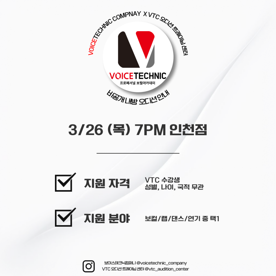 내방 오디션 정보 2026 / 147번째 내방오디션 - 비공개 오디션 작성자관리자 등록일 26-02-13 조회3회 본문 2026 / 147번째 내방오디션 - 비공개 오디션 2026 / 148번째 내방오디션 - 젤리피쉬 엔터테인먼트 2026 / 146번째 내방오디션 - 피네이션 목록