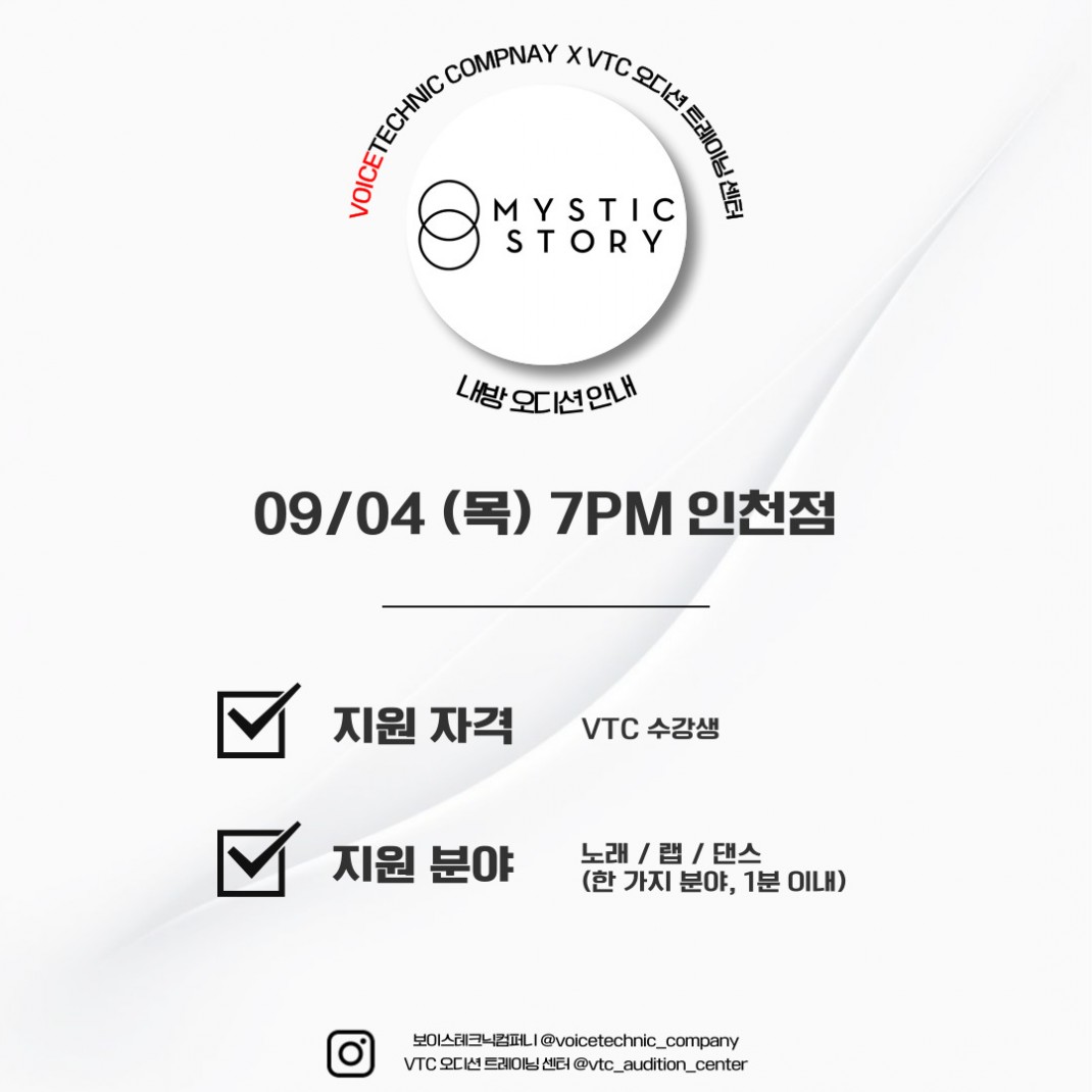 내방 오디션 정보 2025 / 125번째 내방오디션 - 미스틱 스토리 2025년 9월 4일 작성자관리자 등록일 25-08-29 조회198회 본문 2025 / 125번째 내방오디션 - 미스틱 스토리 2025년 9월 4일 2025 / 126번째 내방오디션 - 큐브 엔터테인먼트 2025년 9월 18일 2025 / 124번째 내방오디션 - 타이탄 콘텐츠 2025년 8월 28일 목록