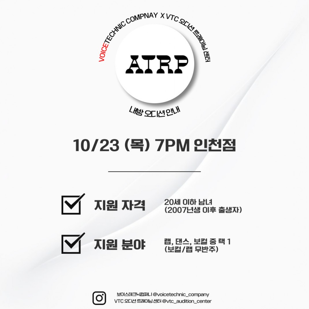 내방 오디션 정보 2025 / 129번째 내방오디션 - ATRP 2025년 10월 23일 작성자관리자 등록일 25-10-10 조회152회 본문 2025 / 129번째 내방오디션 - ATRP 2025년 10월 23일 2025 / 130번째 내방오디션 - 모드하우스 2025년 10월 30일 2025 / 128번째 내방오디션 - 빅플래닛 메이드 2025년 10월 16일 목록